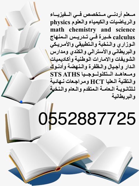 لطلاب التكنولوجيا والتقنية والطيران والجامعات وجميع المراحل التعليمية الأخرى منهاج وزاري بريطاني أمريكي شويفات (معيد جامعي على استعداد لتدريس ومراجعة مواد الفيزياء والرياضيات والكيمياء والاحصاء والإستاتيك، وخبرة في امتحان SAT ومتخصص في المواد الجامعية الهندسية والمحاسبة / موبايل مدرس أردني خصوصي لمواد physics رياضيات وكيمياء وفيزياء خبرة في مناهج التكنولوجيا والمناهج الأمريكي