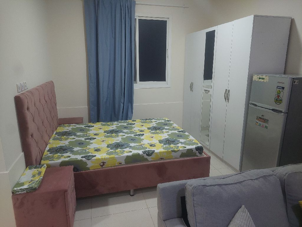 Studio apartment for rent near Seef Hospital, fully furnished, first occupancy after renovation, new furniture, family building, private parking. rent is AED2000. Contactphone number/ email address