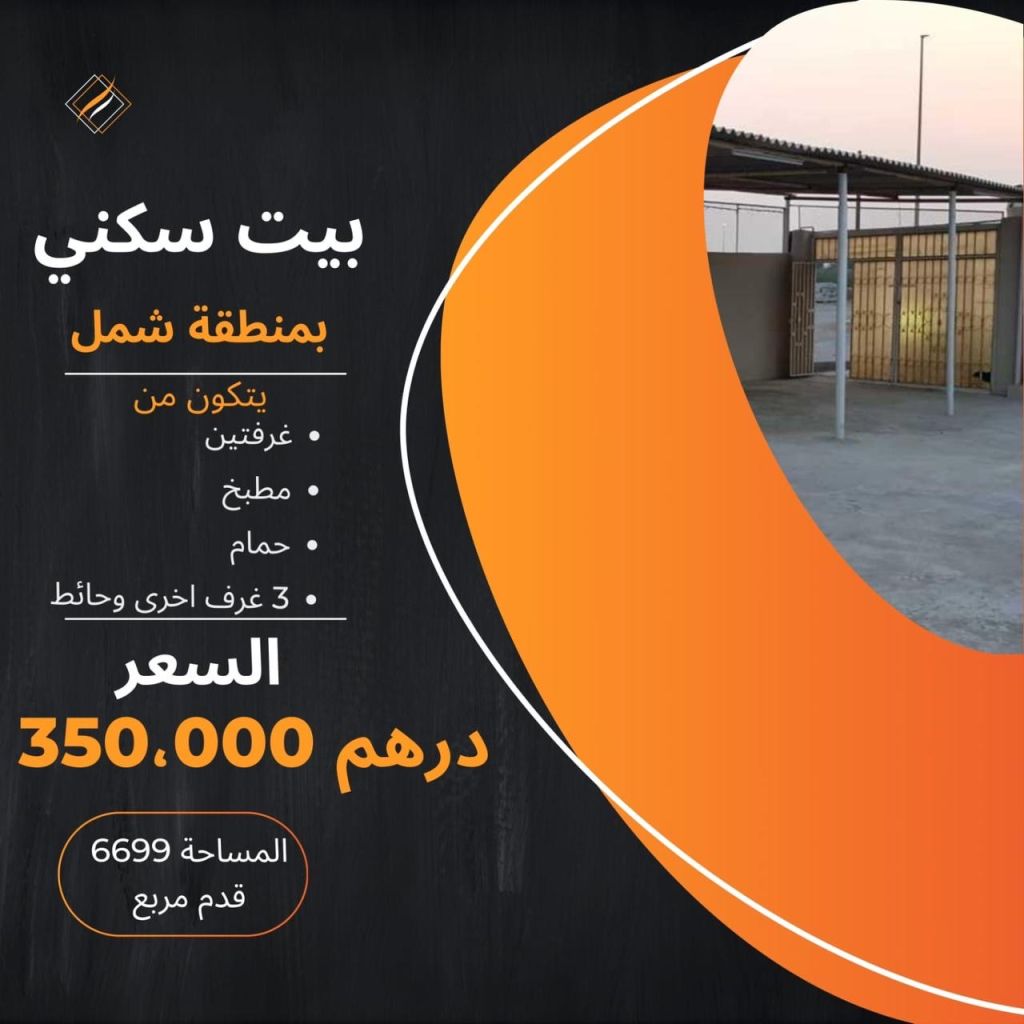 بيت شعبي في منطقة شمل - رأس الخيمة المساحة 6699 قدم (622.37م) يتكون من 5 غرف نوم - مطبخ - حمام السعر 350000 درهم