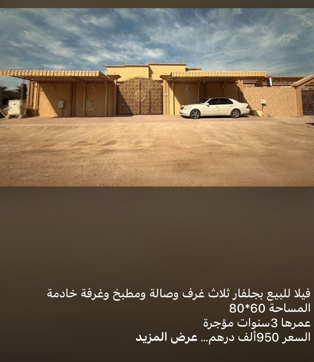 فيلا للبيع في جلفار 3 غرف وصالة ومطبخ وغرفة خادمة السعر 950000 درهم