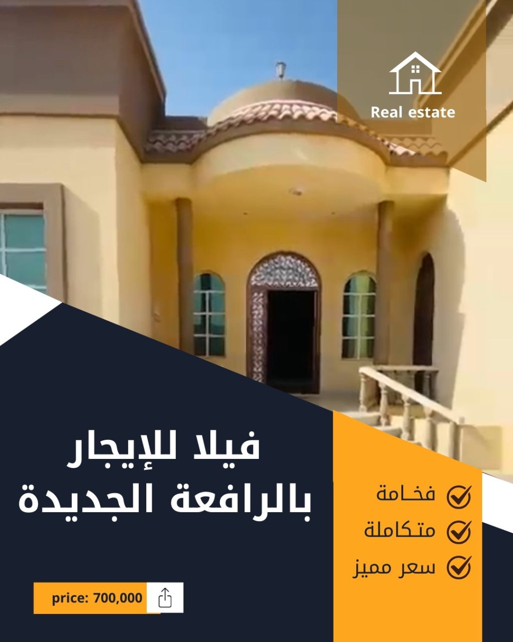فيلا للإيجار في الرفاعة الجديدة بموقع متميز مكونة من - 4 غرف نوم ماستر - صالة مجلس - غرفة عاملة - مطبخ داخلي - مع المكيفات حوش كبير - مكان للزراعة تصلح عائلات، أو مهندسين، أو استاف موظفين طريقه الدفع دفعة واحدة أو دفعتين السعر المطلوب 700000 درهم