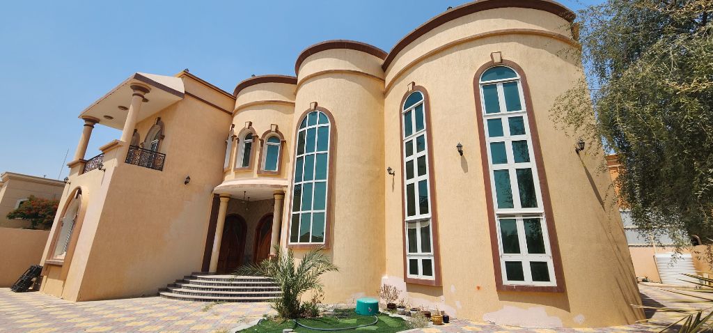 For rent 6BHK Villa 2 floors - in Al Dhait Villa for rent in Al Dhait Spacious two - storey villa with a practical layout, ideal for large families. Ground Floor Large men’ Majlis Reception hall Family sitting area with washbasins and bathroom One master bedroom Maid’s room with attached bathroom Laundry room Storage room Kitchen with additional pantry First Floor Family lounge and hallway Four master