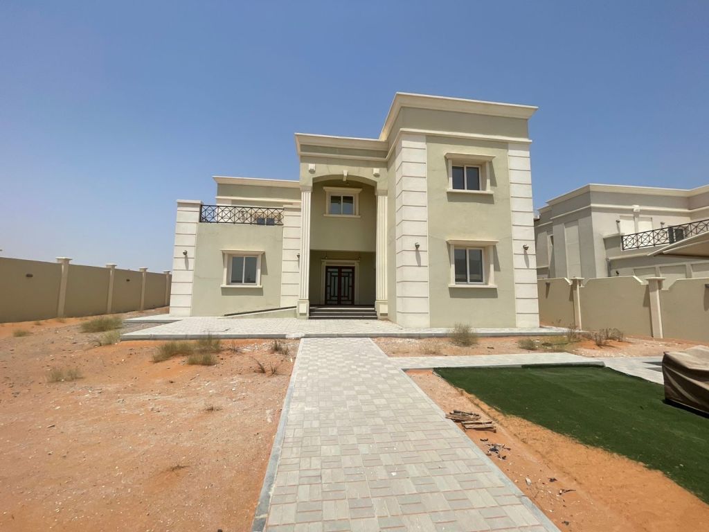 للإيجار فيلا جديدة أول ساكن في منطقة بطين السمر في رأس الخيمة طابقين مكونة من أربع غرف ماستر وصالة ومجلس وغرفة غسيل وستور ومطبخ وحوش وموقف سيارات مطلوب 90 ألف موجود كهرباء بدون عقد بلدية