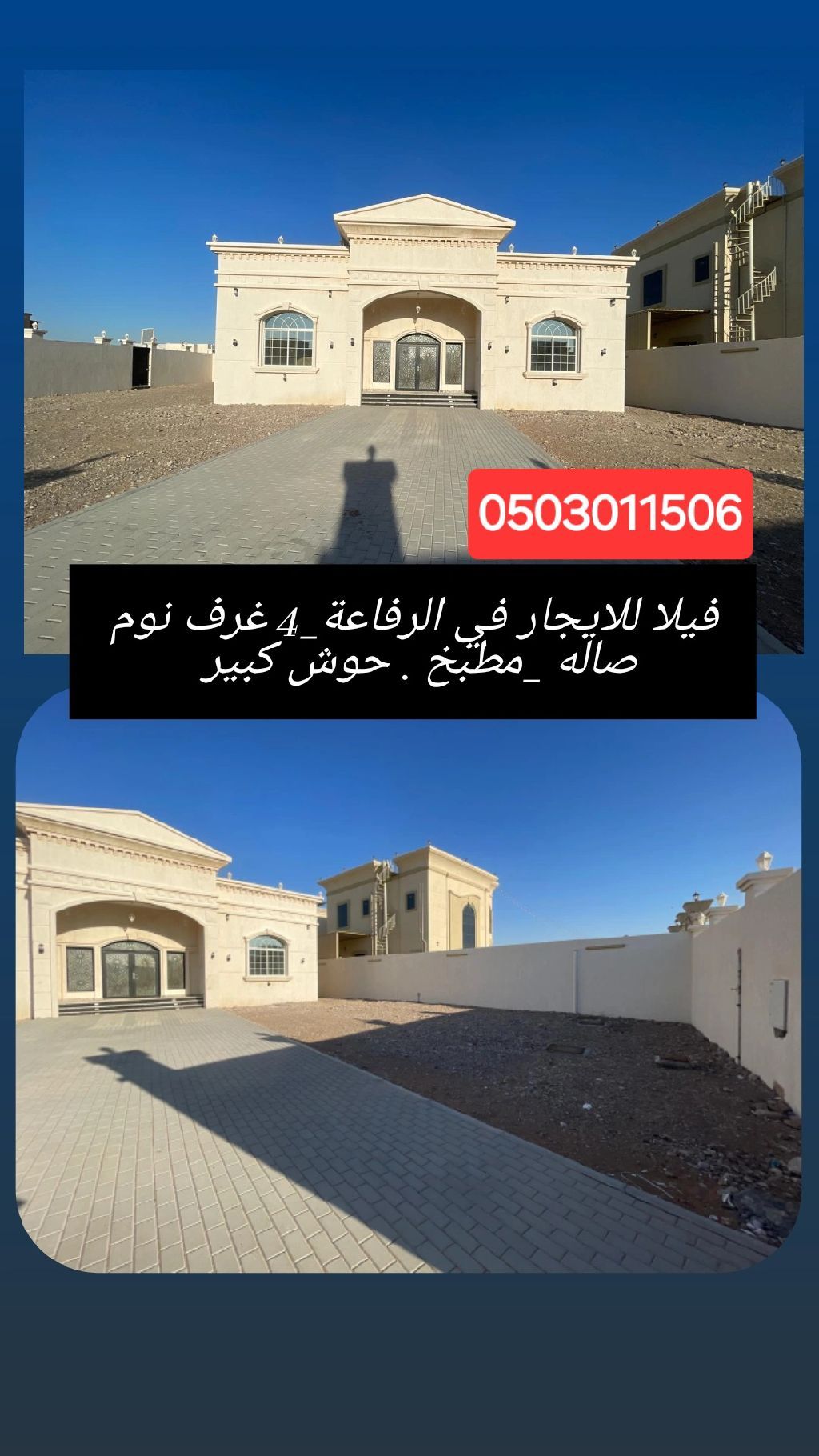 للإيجار فيلا بمنطقة الرفاعة الجديدة عبارة عن 4 غرف وصالة وحوش كبير مع المكيفات احجز الآن