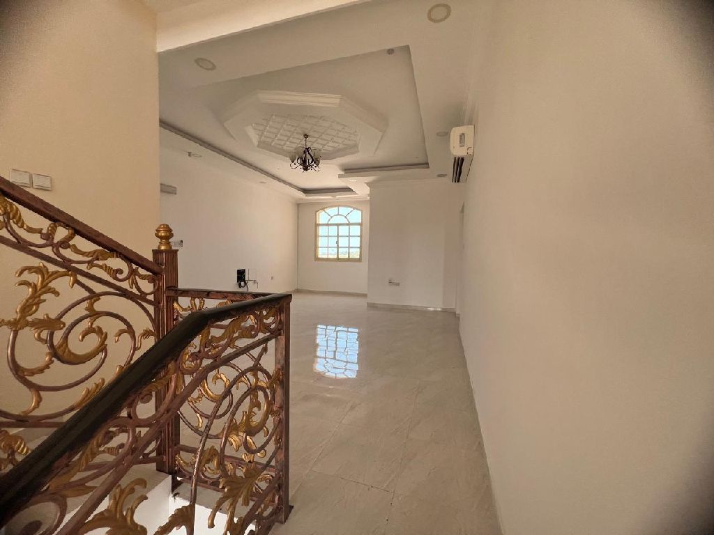 For rent in Al - Dhayt Al - Janoubi area, luxurious two - story villa. The ground floor has 3 master bedrooms and a living room. The upper floor has 4 master bedrooms, a living room, and an internal kitchen, along with an external annex consisting of 3 master bedrooms, a maid's room, an external kitchen, a laundry room, a tandoor oven, and a Majlis (formal sitting room)
