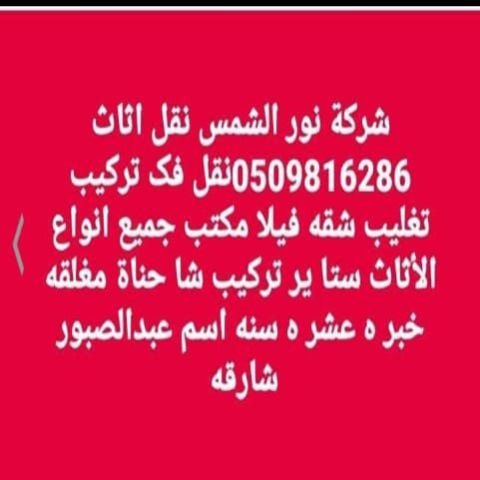 نور الشمس نقل أثاث 0509816286 نقل وفك وتركيب وتغليف شقة وفيلا ومكتب ومستودع وجميع أنواع الأثاث وستارة وتركيب وشاحنة مغلقه وخبرة عشر سنوات / اسمي عبد الصبور)
