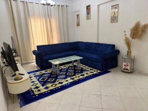 For monthly rent in Ajman in Al Yasmeen Towers opposite Ajman City Center, available from today, furnished apartment for rent, 3 rooms, a hall, 4 bathrooms, a kitchen, luxury finishing, clean, fully furnished, very elegant and beautiful furniture, including all bills, 7500, rent, distinguished location, easy exit, close to all services