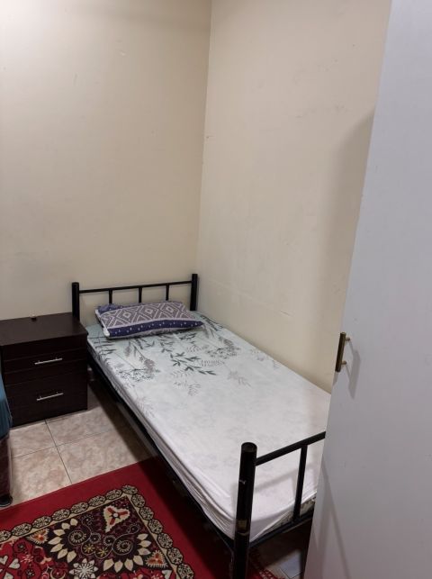 متاح سرير شيرينج بغرفة كبيرة مفروشة نظيفة ل 3 أفراد فقط للإيجار الشهري شامل والمطبخ متوفر جميع الأدوات والاجهزة الكهربائية وموقف مجاني بمبلغ 750 درهم للفرد بالشهر مع تأمين مسترد 500 درهم، النباعة الشارقة، بجوار دوار المطافي خلف نستو بجانب بناية ملبار للبهارات مقابل محطة الباص للتواصل