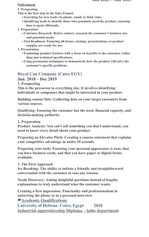 الاسم محمد الجنسية مصري اشتغلت سيلز في المبيعات الملابس والهداية ابحث عن فرصة عمل