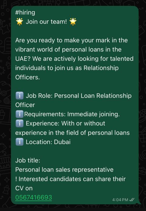 مطلوب شباب وبنات سيلز لشركة أوت سورس لأكبر بنوك الامارات ابعت CV علي الواتساب - لا يشترط خبرة - دبي القرهود