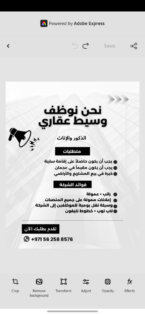 فرصة عمل مميزة في مجال العقارات تعلن شركة رائدة في مجال العقارات عن حاجتها الى موظفين للعمل في قسم التسويق والمبيعات العقارية. المتطلبات يفضل وجود خبرة سابقة في مجال العقارات أو المبيعات. مهارات تواصل عالية وقدرة على الاقناع. الجدية والالتزام وحب العمل ضمن فريق. لا تمتلك خبرة لا مشكلة نوفر فترة تدريب احترافية مجانية تؤهلك لدخول سوق العقارات بثقة واحترافية. المجاز 1