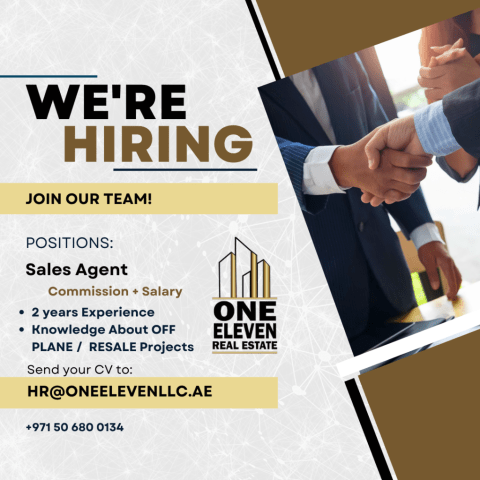 نبحث عن وكلاء مبيعات ممن لديهم خبرة لا تقل عن سنة في مجال العقارات مع عرض يتضمن راتب + عمولة يشترط توفر معرفة قوية بمشاريع العقارات (Off - Plan) واعادة البيع (Resale) في سوق الامارات الى جانب سجل ناجح في المبيعات داخل سوق العقارات في دولة الامارات يرجى إرسال السيرة الذاتية - موقع الشركة مدينة أبوظبي شارع خليفة