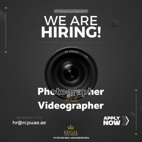 Regal Capital Properties is hiring a real estate Photographer/ Videographer. Send CV & portfolio