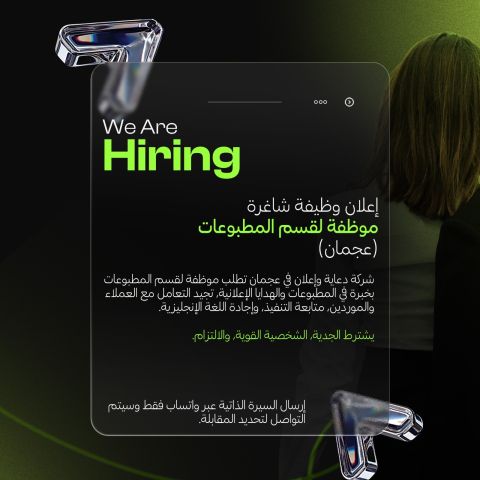 اعلان وظيفة شاغرة - موظفة لقسم المطبوعات (عجمان) الراشدية 2 شركة دعاية واعلان في عجمان تطلب موظفة لقسم المطبوعات بخبرة في المطبوعات والهدايا الاعلانية، تجيد التعامل مع العملاء والموردين، متابعة التنفيذ، واجادة اللغة الانجليزية. يشترط الجدية، الشخصية القوية، والالتزام. إرسال السيرة الذاتية عبر واتساب فقط وسيتم التواصل لتحديد المقابلة