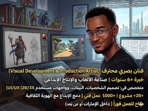 فنان بصري محترف (Visual Development & Production Artist) بخبرة تتجاوز 6 سنوات في صناعة الألعاب والانتاج الابداعي. متخصص في تصميم الشخصيات، البيئات، وواجهات المستخدم UI / UX، مع اتقان العمل ثنائي وثلاثي الأبعاد (2D / 3D) يمتلك خبرة قوية في الاخراج الفني وإدارة عملية الانتاج من الفكرة حتى التنفيذ النهائي. ساهم في أكثر من 20 مشروع وقدم ما يزيد عن 1000 عمل فني. يتميز بدمج الابداع مع الهوية الثقافية. م