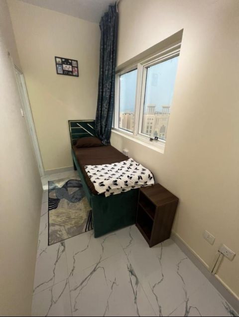 Bunk bed required for one person, partition, complete privacy,600 dirhams, including internet, location Baniyas East 2