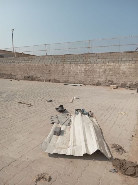 For rent 10000 SqFt fenced plot of land in Sajaa, suitable for an office, kitchen, and services, with electricity included, for AED100000