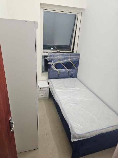 Standard room with a large balcony, first occupancy. Male staff accommodation. In Al Al Nuaimia 2. Near Afghan Kebab Restaurant. Near King Faisal Street. Next to Gulf Bridge. TV and refrigerator provided in the room. Price for one young man AED2000. Price for two young men AED2200