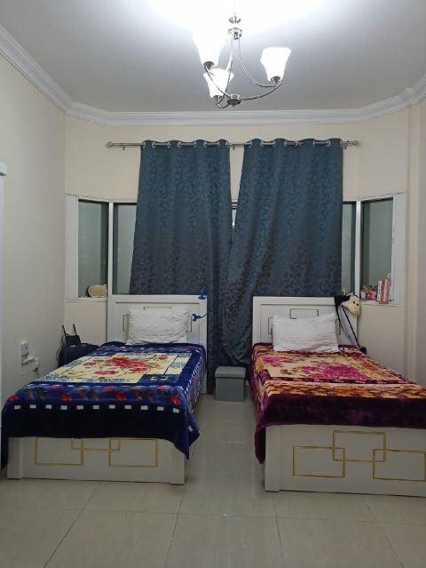 لمحبي الهدوء والخصوصية متوفر غرفة 3 أشخاص ببلكونه 650 درهم وغرفة 4 أفراد 550 درهم وغرفة واسعة 500 درهم الشقة أول ساكن عدد قليل، فرش ومراتب واجهزة جديدة شامل جميع الخدمات تكييف مركزي نظافة يومية انترنت عالي السرعة وموقف مجاني للسيارات / في النعيمية 1 بجوار مدرسة الحكمة وشارع خليفة للتواصل