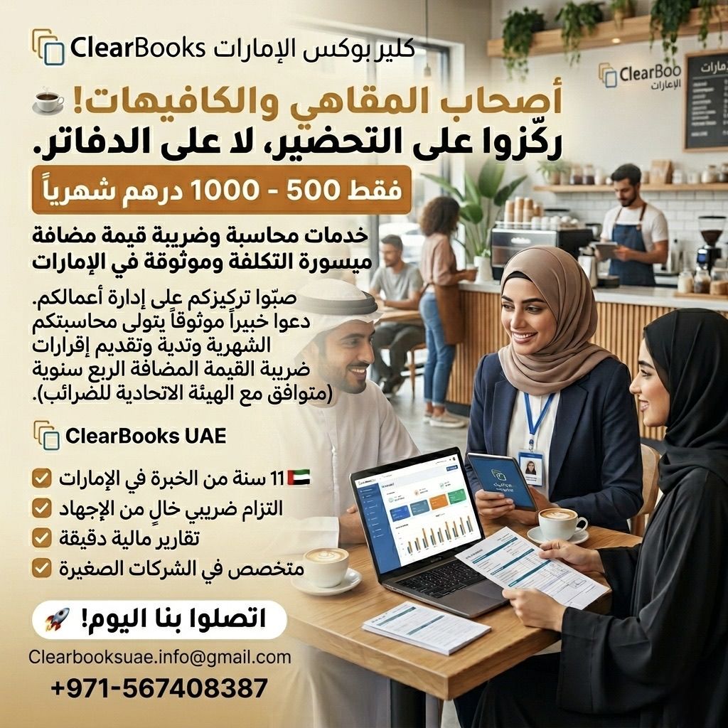 لماذا تختارنا لراحة بالك خبرة عميقة 11 سنة من الخبرة المتخصصة في الامارات. التزام ضريبي خال من الإجهاد نضمن دقة إقراراتك وامتثالك للقوانين. تقارير دقيقة حلل أداءك المالي بثقة. أسعار ميسورة جودة احترافية بسعر مناسب لأعمالك. صب تركيزك على إدارة أعمالك، واترك الأرقام علينا. اتصلوا بنا اليوم للبدء الهاتف 971 - 5