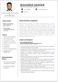 Dedicated Accountant with 5 + years experience in financial reporting, auditing, IFRS compliance, budgeting, AR/ AP, and tax. Strong analytical and leadership ability. Seeking a professional opportunity in the Middle East to support organizational growth