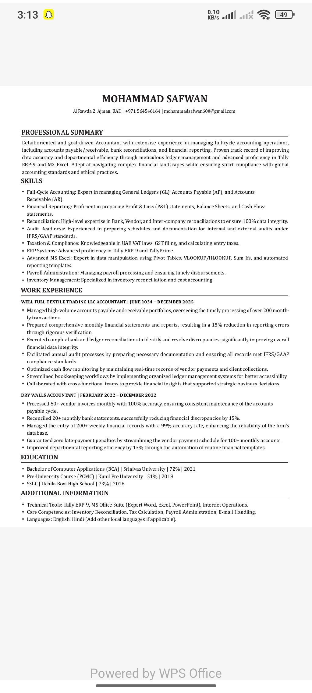 محترف محاسبة بخبرة 3 سنوات في مسك الدفاتر، الرواتب، اعداد التقارير المالية وإدارة الحسابات. ماهر في Excel وTally، مع مهارات تحليلية قوية واهتمام كبير بالدقة والتفاصيل. ابحث عن وظيفة تحدية للاستفادة من مهاراتي والمساهمة في نمو المنظمة