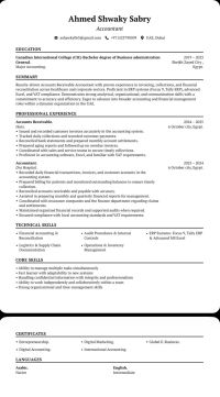 Ahmed Shwaky Sabry, Accountant with experience in accounts receivable, invoicing, collections, bank reconciliation & financial reporting. Skilled in ERP (Focus 9, Tally) Excel, detail - oriented and committed. BBA in Accounting, seeking a Dubai role to grow skills and contribute to the finance team’s success
