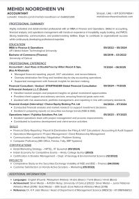 I am Mehidi Noordheen vn. I hold an MBA in Finance & Operations and 3 years of experience. I have strong background in financial management, budgeting, cost control & strategic planning. Proficient in ERP software, MS Office and accounting tools. I am currently looking for a job and I can join immediately