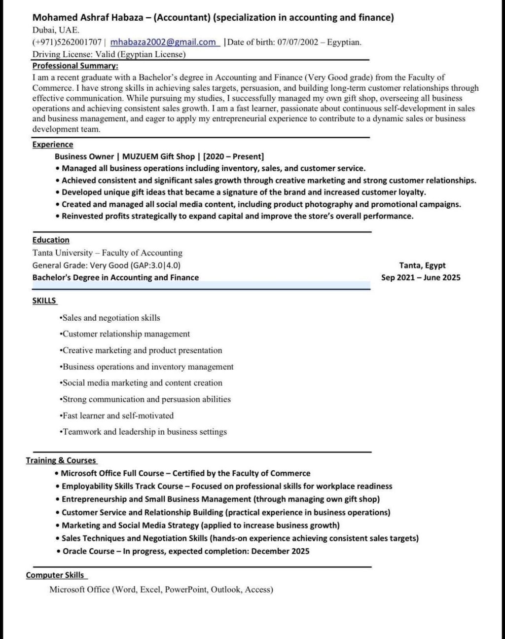 Seeking a job opportunity as a Financial Accountant. Accounting graduate with solid knowledge of accounting principles and financial reporting. Highly motivated, fast learner, and eager to grow professionally. Open to new opportunities and professional connections