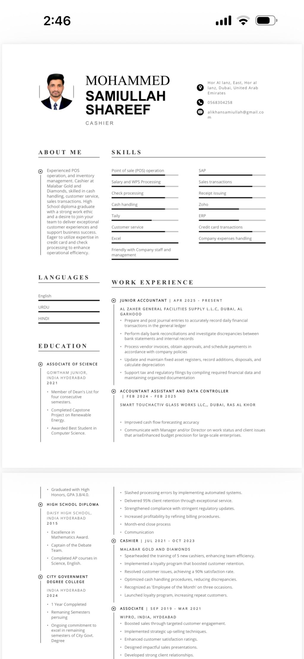Position, assistant accountant, I have good experience in UAE, in Maintain & update accounting records & finance transactions, prepare & process invoices, payments & receipt, handle accounts payable, assist in monthly, quarterly, prepare journal entries & maintain ledger, support VAT calculations & filling as per UAE regulations, monitor petty cash & expenses, assist payroll