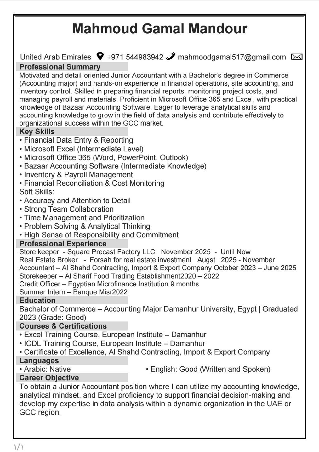 I am a recent accounting graduate seeking a job opportunity in the field, such as an accounting assistant or data entry clerk, to begin my career. I have a residence permit