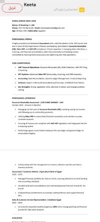 كمال من مصر خريج كلية تجارة انجليزي جامعة المنصورة خبرة 6 شهور في الامارات كمحاسب عملاء خبرة في برامج ERP SYSTEM وخاصة ODOO وعملت في البنك الزراعي المصري لمدة عامين وشاطر جدا في التجارة والسيلز ومهارات التفاوض والتعامل مع العملاء وسريع التعلم وجاهز للانضمام والعمل ضمن فريق
