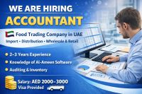 Hiring Accountant Food trading company (import, distribution, wholesale & retail) in UAE seeking Accountant with 2 - 3 years experience. Must know accounting systems (Al - Ameen preferred) Duties include financial recording, auditing, and inventory control. Salary AED2000 - 3000 Benefits Visa, accommodation & transport provided