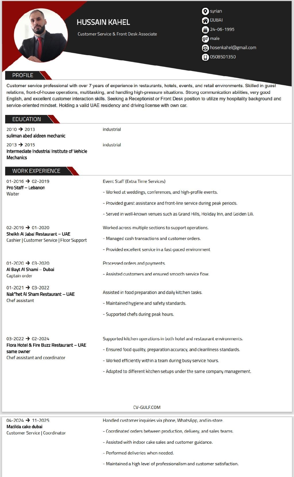 كافة معلومات عملي في الصورة أعلاه. بدأت من لبنان وحاليا في الامارات. خدمة زبائن ادارة حل مشاكل تنسيق توصيل، ملم بكل ما يخص الزبائن اونلاين وعلى الواقع. لدي اقامة وسيارة