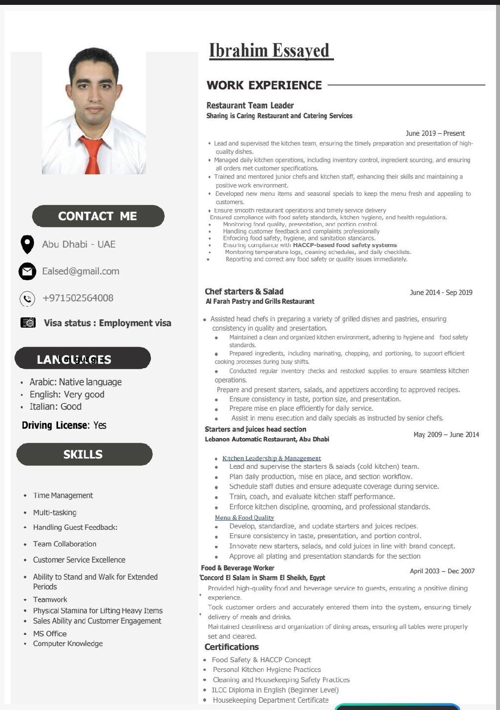 I am writing to express my interest in applying for a position at your company With several years of experience in the food service and hospitality industry, I am confident in my ability to contribute positively to your team. My background includes roles ranging from sandwich maker to chef assistant, restaurant team leader, and food & beve