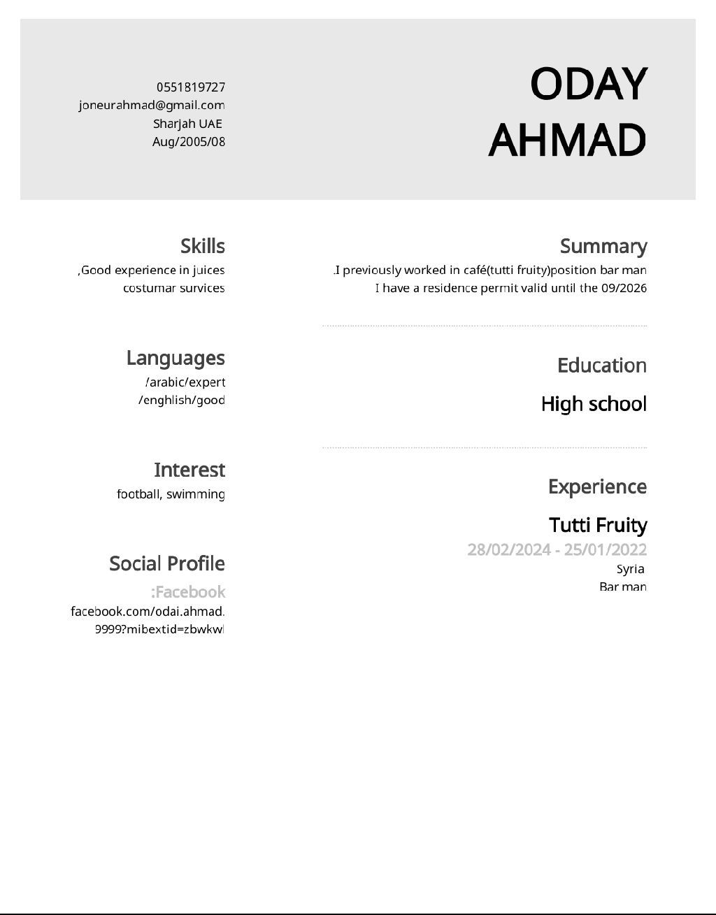 A 20 - year - old Syrian man looking for a job as a bar man's assistant