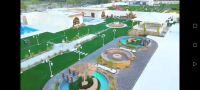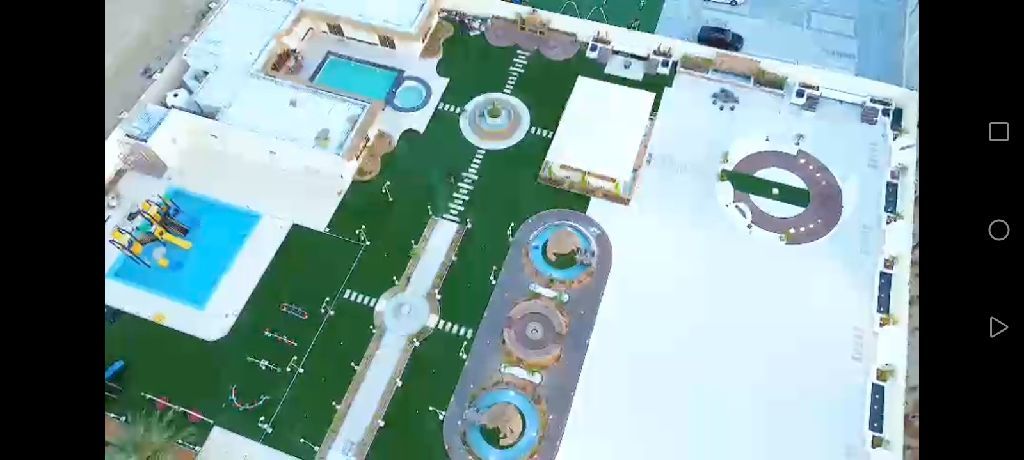 تصميم وتنفيذ حدائق استراحات. تركيب حشيش صناعي