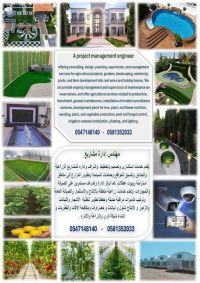 A project management engineer provides consulting, design, planning, supervision, and management services for agricultural projects, gardens, landscaping, swimming pools, and farm development into rest areas and holiday homes. We also provide ongoing management and supervision of maintenance and reservations, and offer agricultural services related to production, investment, general maintenance