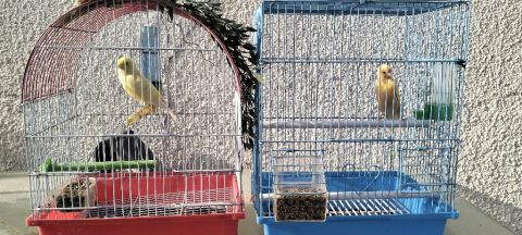 كناري عدد 2 مع القفص عدد 2 للبيع بسعر 200 درهم الجميع