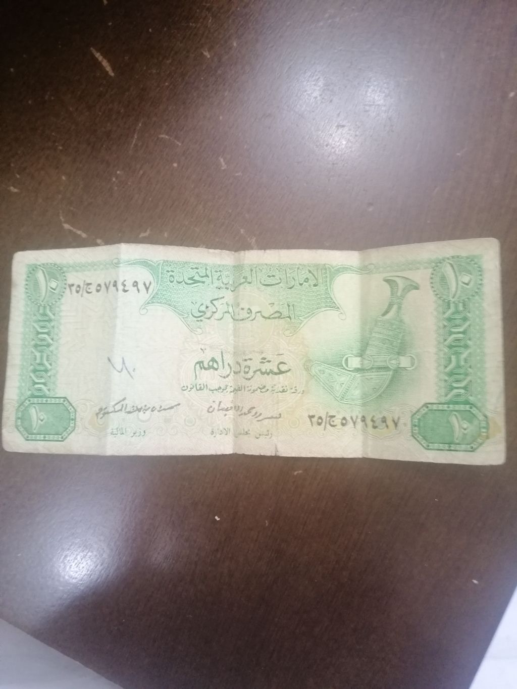 ورقة 10 دراهم العملة الاماراتية الاصدار الثاني للبيع بحالة جيدة