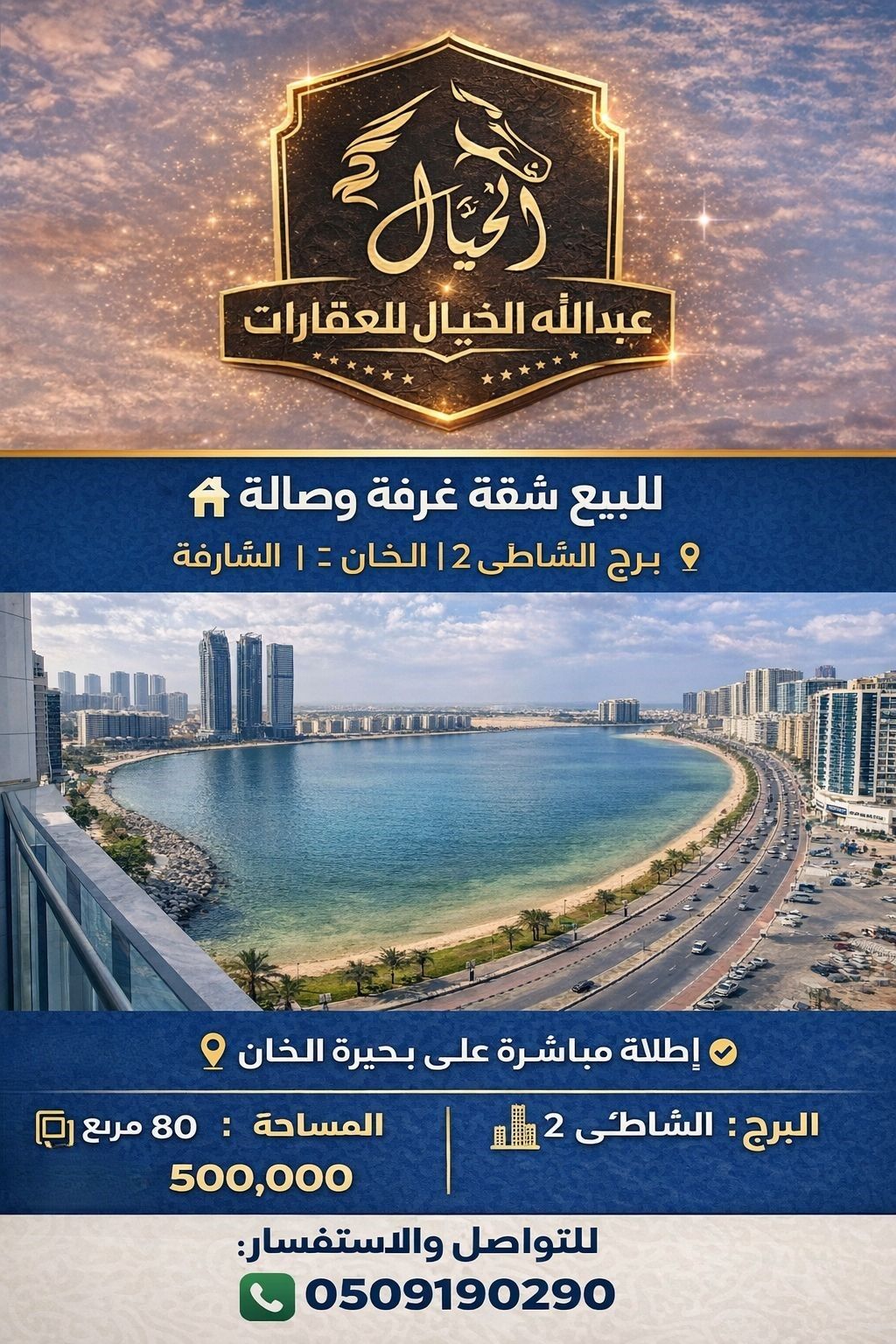 فرصة للبيع غرفة وصالة برج الشاطئ 2 مساحة 80 متر مربع بسعر 500 ألف درهم نهاني