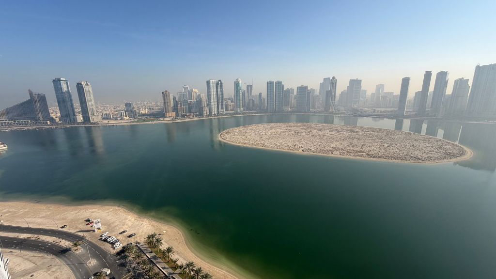 اطلالة بحرية كاملة على بحيرة الخان شقة واسعة 4 غرف معدلة من 3) صالة كبيرة، مطبخ واسع، غرفة خادمة، 4 حمامات وبالكونة باطلالة بانورامية. مساحة 2000 قدم طابق مرتفع، موقف خاص، جاهزة للسكن. جيم ومسبح للملاك موقع حيوي قريب من الكورنيش، دبي والخدمات. فرصة سكن فاخر أو استثمار آمن