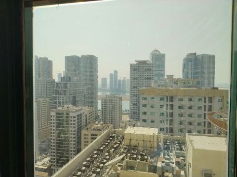 شقة للبيع في الشارقة منطقة المجاز 3 ببرج معروف في المجاز 3 المساحة 1257 قدم مكونة من غرفتين نوم مع خزائن في الحائط وصالة ومطبخ وموزع 2 حمام اطلالة على بحيرة الخان مصينه بالكامل موقع استراتيجي السعر 550 ألف درهم لو مهتم كلمني