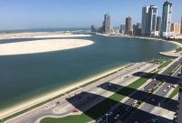 للبيع شقة برج الشاطئ في الخان علي البحيرة اطلالة جانبية غرفة وصالة و2 حمام بدون موقف سيارات بسعر 550 ألف درهم