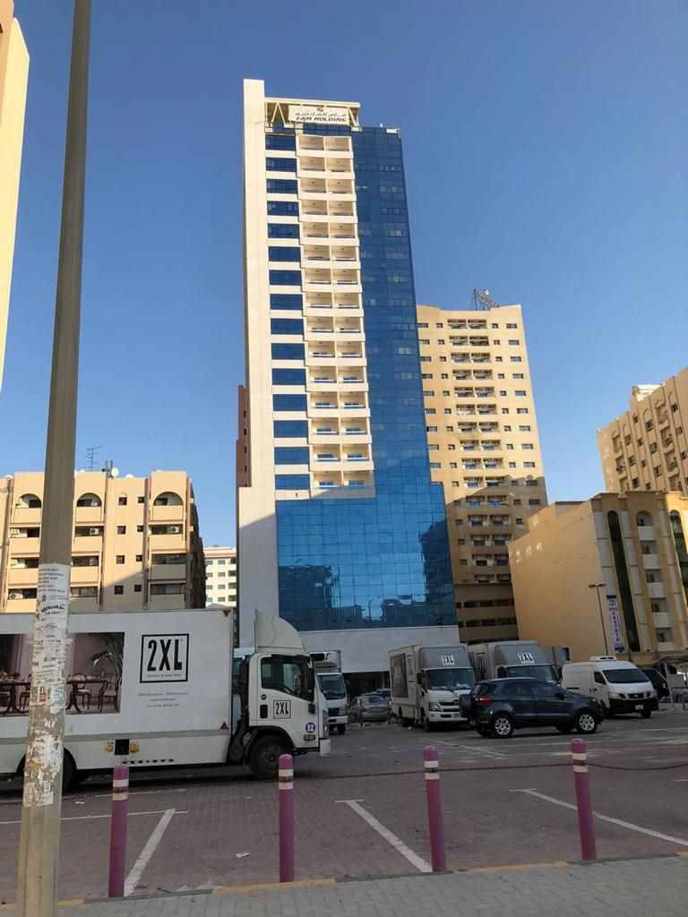 Apartment for sale in Sharjah, Afamia Tower 2, Abu Daniq area - Al Qasimia, very prime location close to all services. It consists of two bedrooms, a living room, two bathrooms, a balcony, and a parking space. Currently rented for AED40000 (old rent) 15th floor, facing Mega Mall. Area 1263 SQM. Age beginning of fourth year. Service fee AED5600000