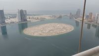 For sale in Sharjah, in Asas Tower, an apartment with a full view of Al Khan Lake. 4 bedrooms, 2 living rooms, 4 bathrooms, kitchen, storage room, and swimming pool. The apartment is on the top floor and has an area of