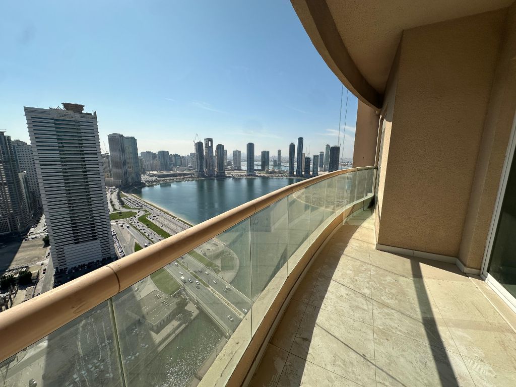 شقة مميزة للإيجار في الشارقة - الخان، غرفتين ماستر وصالة مع بالكونة وتكييف مجاني. تتميز باطلالة جميلة على القصباء، 3 حمامات، غرفة ستور، خزن بالحائط، وجميع الشقق مزودة بباركينغ. متوفر جيم ومسبح داخل البرج، موقع حيوي قريب من الخدمات والمرافق