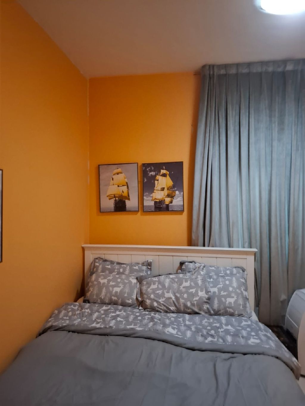 شقة للإيجار للجادين بمنطقة التعاون في إمارة الشارقة بمساحة كبيرة 2400 قدم مربع، تتكون من ثلاث غرف وصالة كبيرة وبلكونه تطل على البحيرة من على البعد ومطبخ وثلاث حمامات وخزائن ملابس على الجدران وموقفين لسيارتين الإيجار 75000
