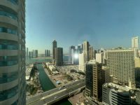 شقة ثلاث غرف وصالة مع بالكونة وموقف، تحتوي على غرفة ماستر، مخزن داخل المطبخ، وحمامين. تتمتع باطلالة على قناة القصباء والبحيرة. الإيجار السنوي 70000 درهم
