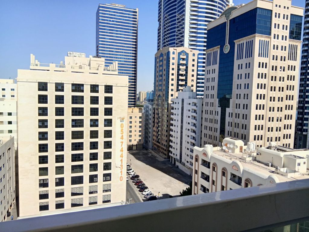 شقة غرفة وصالة للإيجار في المجاز 3 مقابل حديقة الصفيا. تضم بالكونة، تكييف مركزي، صيانة على المالك، وموقف مجاني. موقع ممتاز قريب من جميع الخدمات. الإيجار 40000 درهم ب 4 دفعات، والتأمين 2300 درهم. خيار مناسب للسكن في منطقة حيوية